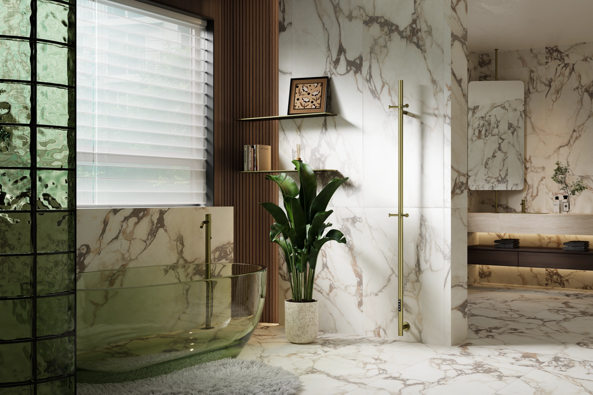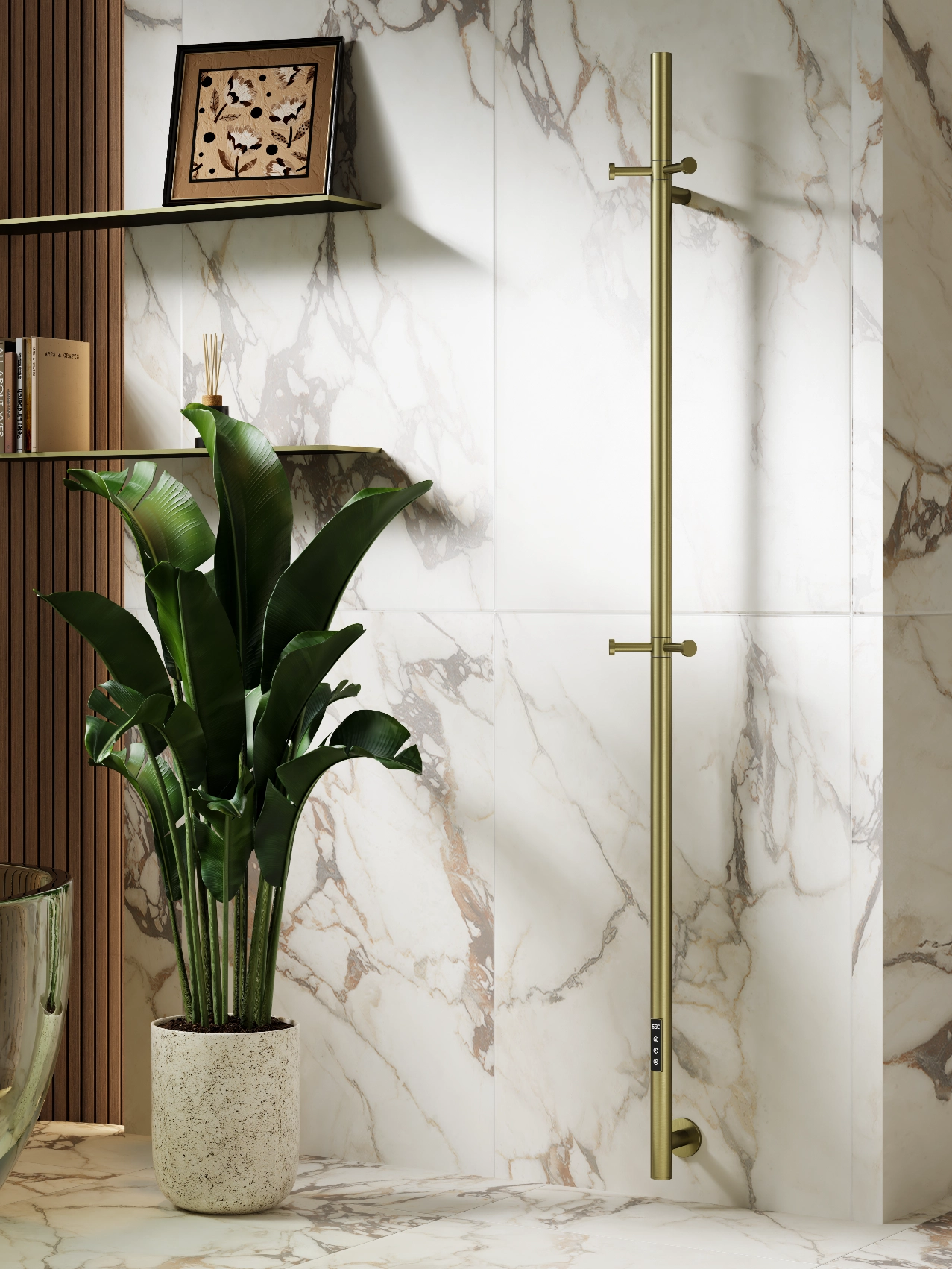 Полотенцесушитель электрический AQUAme AQM3151BG 1700мм c поворотными крючками, с терморегулятором, золото шлифованное