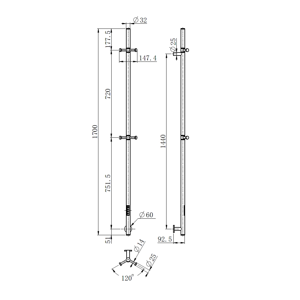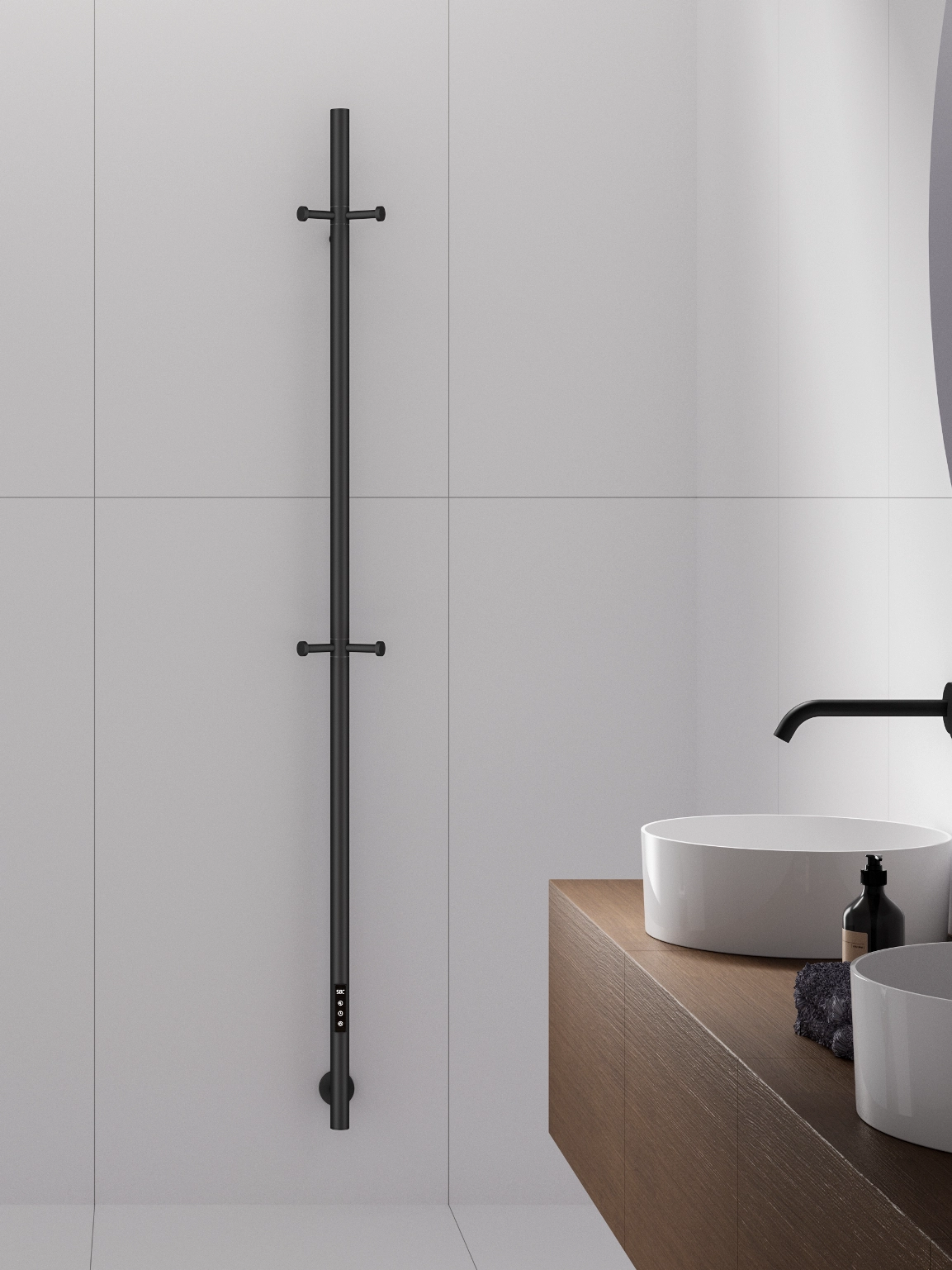 Полотенцесушитель электрический AQUAme AQM3151MB 1700мм c поворотными крючками, с терморегулятором, черный матовый
