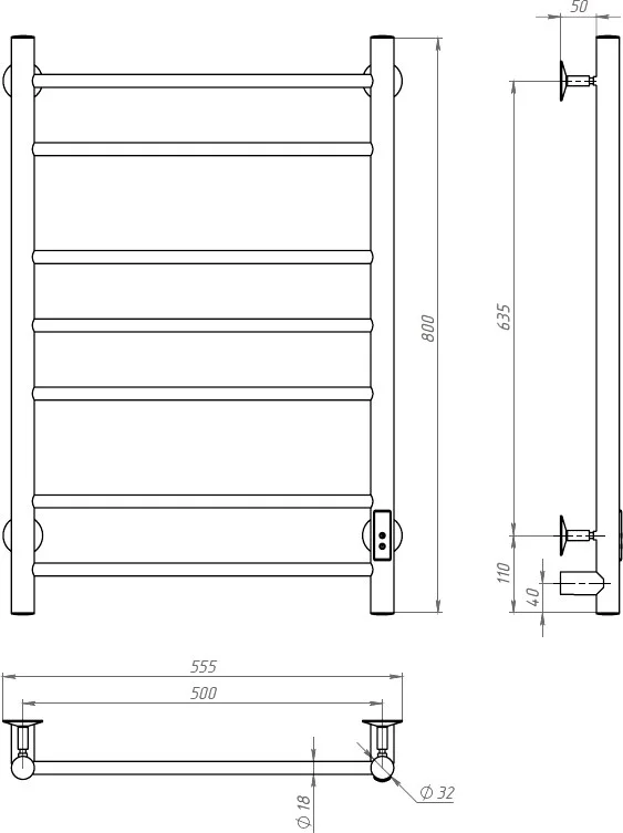 Полотенцесушитель электрический EWRIKA Сафо АС3 80х50, белый 479414
