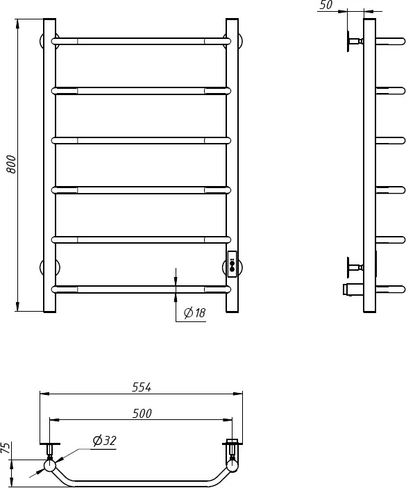 Полотенцесушитель электрический EWRIKA Сафо БР1 80х50, черный 485634
