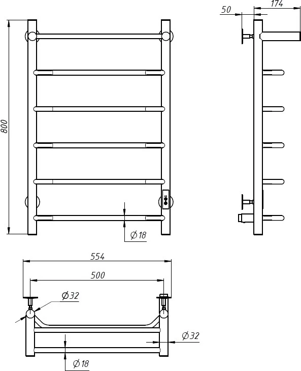 Полотенцесушитель электрический EWRIKA Сафо FT 80х50 черный 571976
