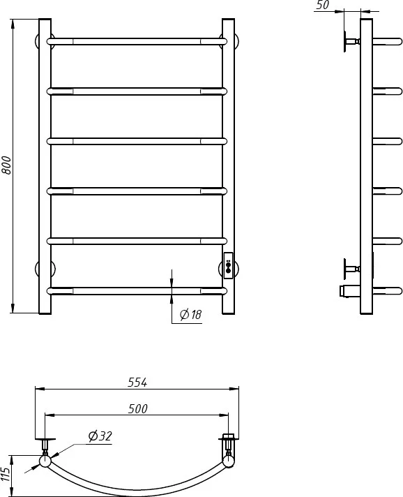 Полотенцесушитель электрический EWRIKA Сафо ПР1 80х50, черный 485630