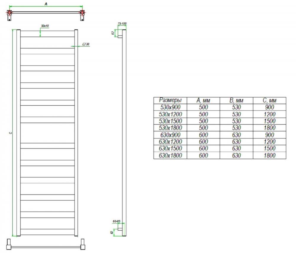 Полотенцесушитель электрический Grota Brezza 530*1800