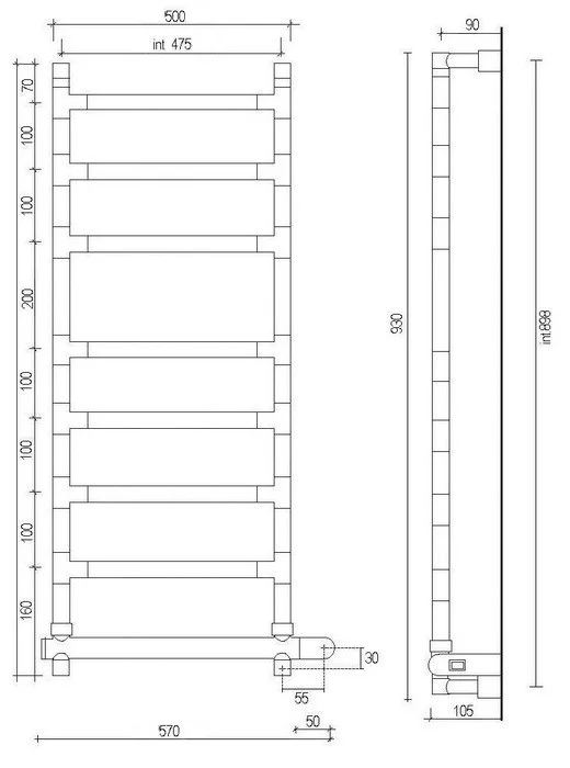 Полотенцесушитель электрический Margaroli Sereno (Серено) 584-8 BOX 475 мм, арт. 58447508B