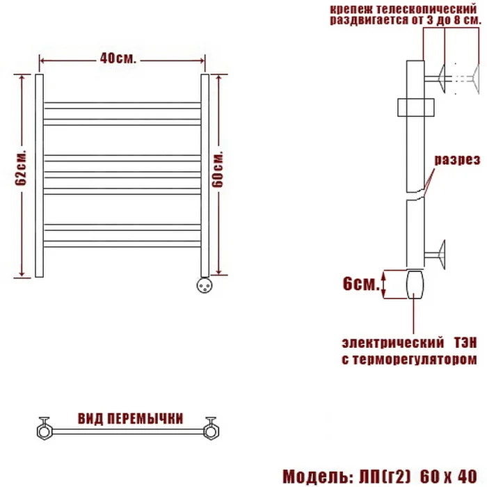 Электрический полотенцесушитель ЛП имеет сдержанный лаконичный дизайн, компактные формы и обладает рядом технических преимуществ.