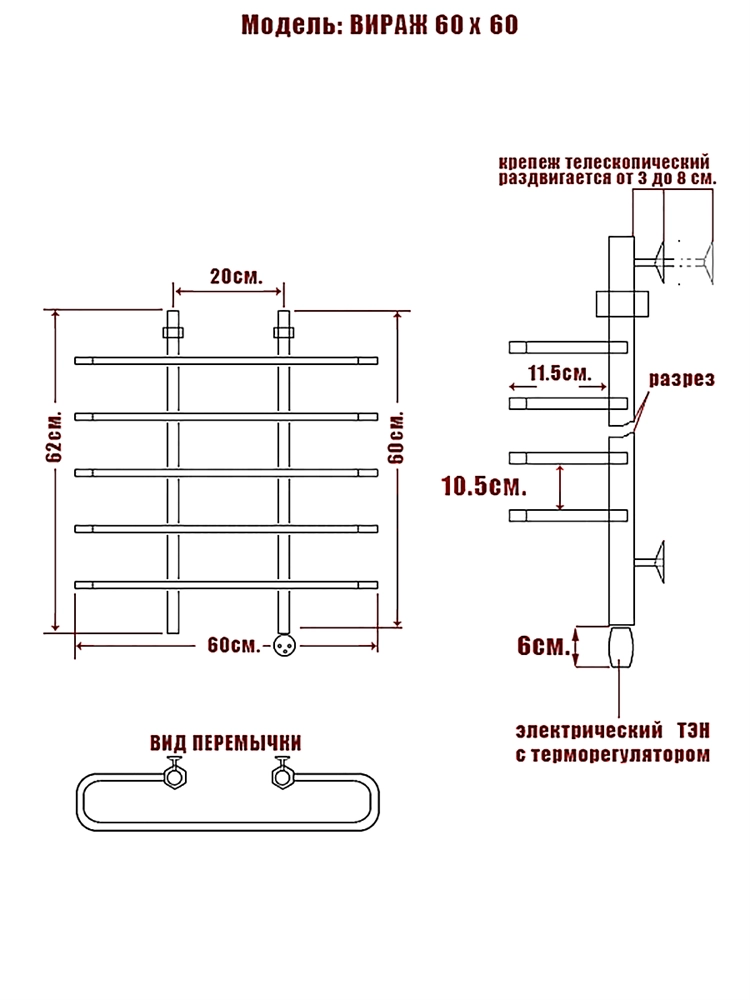 - Полотенцесушитель - 1 шт.