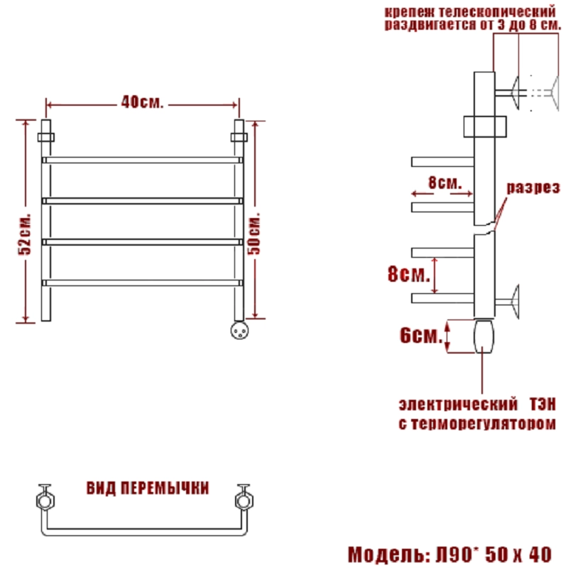 Электрический полотенцесушитель Quadro Л90имеет сдержанный лаконичный дизайн, компактные формы и обладает рядом технических преимуществ.