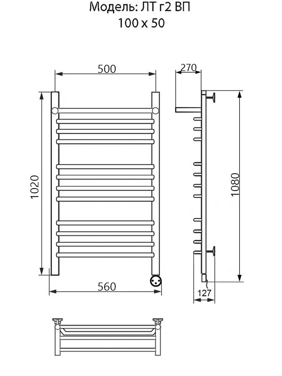 Полотенцесушитель электрический Ника TRAPEZIUM ЛТ (Г2) ВП 100/50 правый тэн