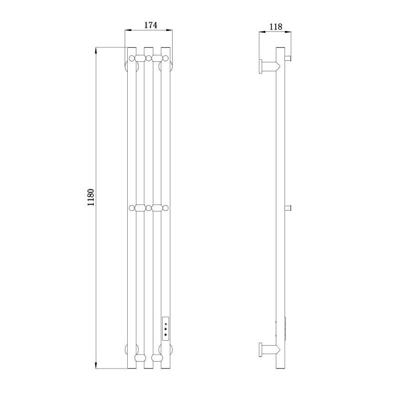 • Размеры (ШхВхГмм): 174х1180х118мм
