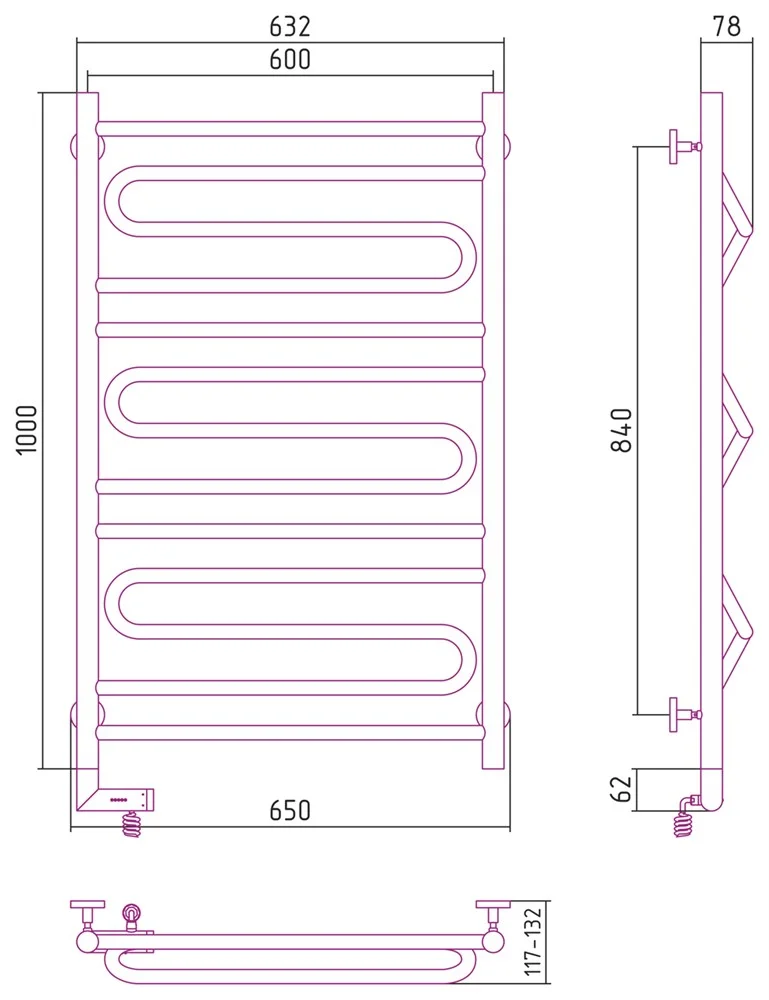 Полотенцесушитель электрический Сунержа Элегия 2.0 1000х600 МЭМ левый 00-5218-1060 Без покрытия