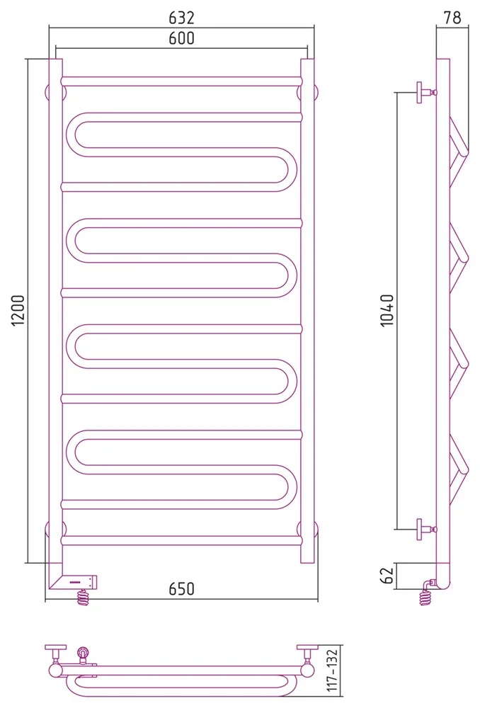 Полотенцесушитель электрический Сунержа Элегия 2.0 1200х600 МЭМ левый 00-5218-1260 Без покрытия