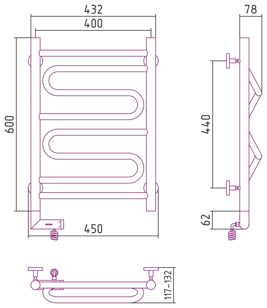 Полотенцесушитель электрический Сунержа Элегия 2.0 600х400 МЭМ левый 00-5218-6040 Без покрытия