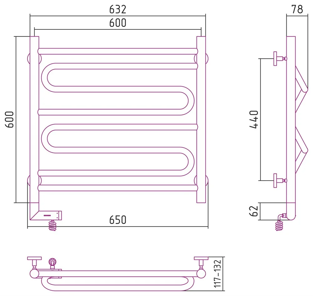 Полотенцесушитель электрический Сунержа Элегия 2.0 600х600 МЭМ левый 30-5218-6060 Матовый белый
