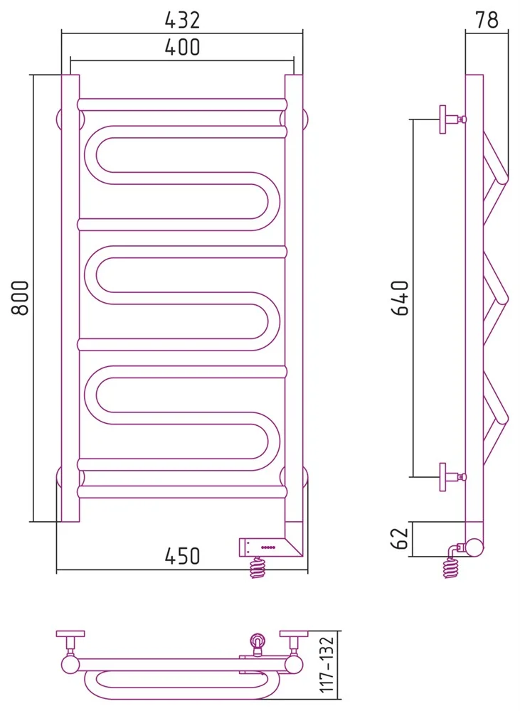 Полотенцесушитель электрический Сунержа Элегия 2.0 800х400 МЭМ правый 03-5219-8040 Золото