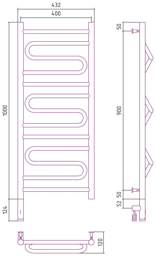 Полотенцесушитель электрический Сунержа Элегия 3.0 1000х400 МЭМ левый 30-5818-1040 Матовый белый