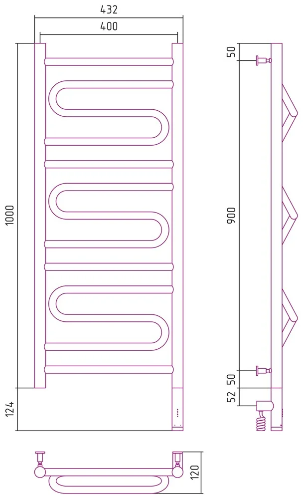 Полотенцесушитель электрический Сунержа Элегия 3.0 1000х400 МЭМ правый 00-5819-1040 Без покрытия
