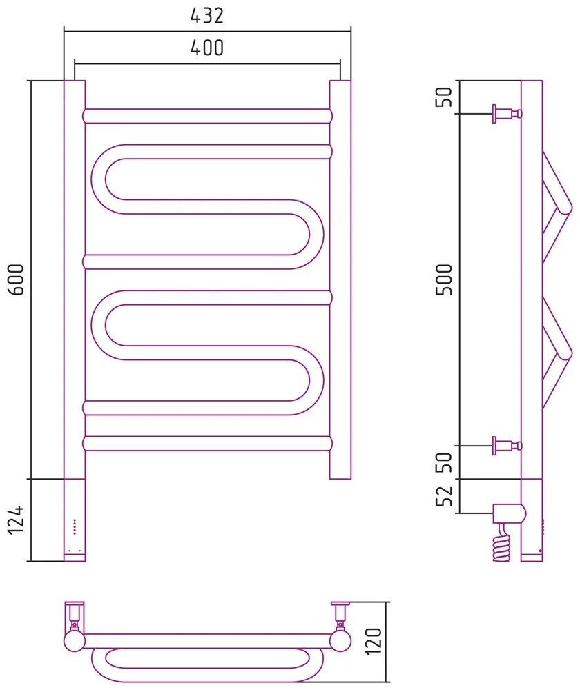 Полотенцесушитель электрический Сунержа Элегия 3.0 600х400 МЭМ левый 30-5818-6040 Матовый белый