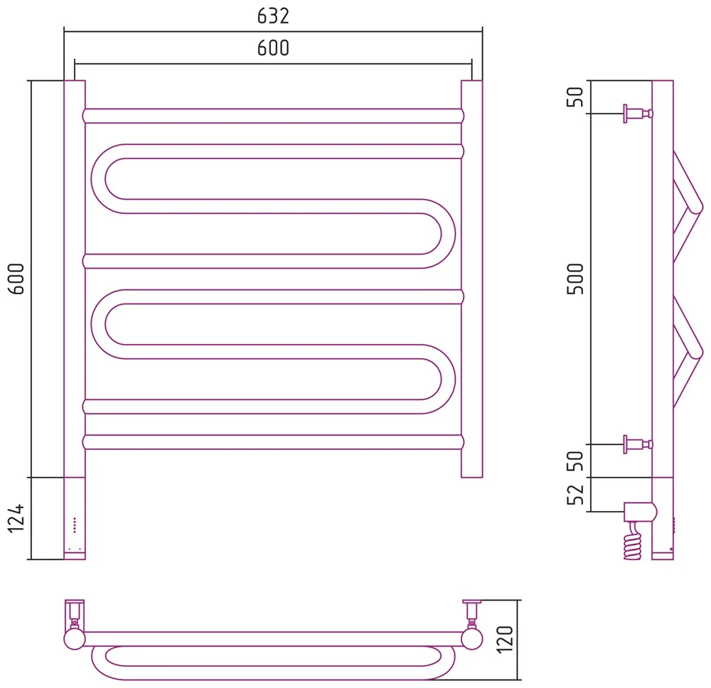 Полотенцесушитель электрический Сунержа Элегия 3.0 600х600 МЭМ левый 30-5818-6060 Матовый белый