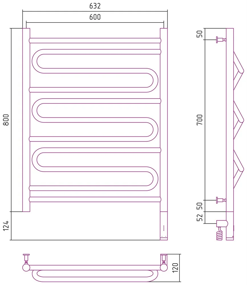 Полотенцесушитель электрический Сунержа Элегия 3.0 800х600 МЭМ правый 12-5819-8060 Белый