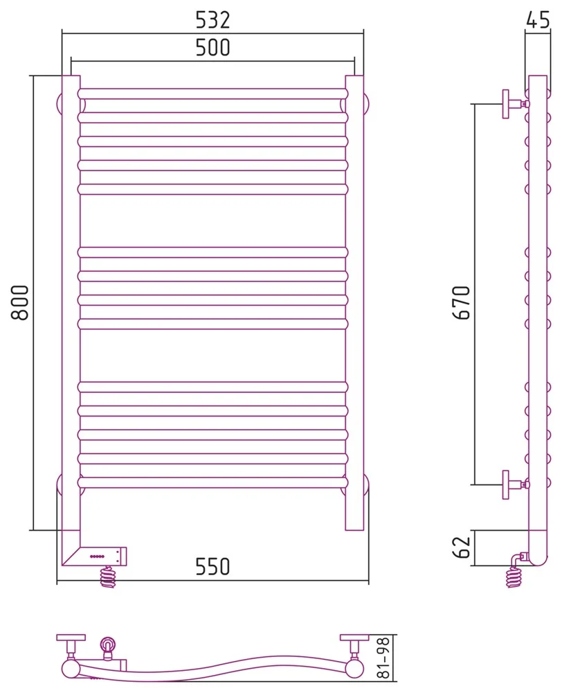 Полотенцесушитель электрический Сунержа Флюид 2.0 800х500 МЭМ левый 12-5220-8050 Белый