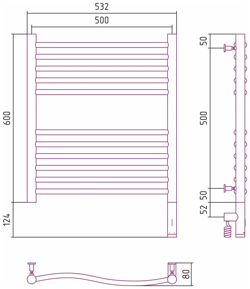 Полотенцесушитель электрический Сунержа Флюид 3.0 600х500 МЭМ правый 30-5821-6050 Матовый белый