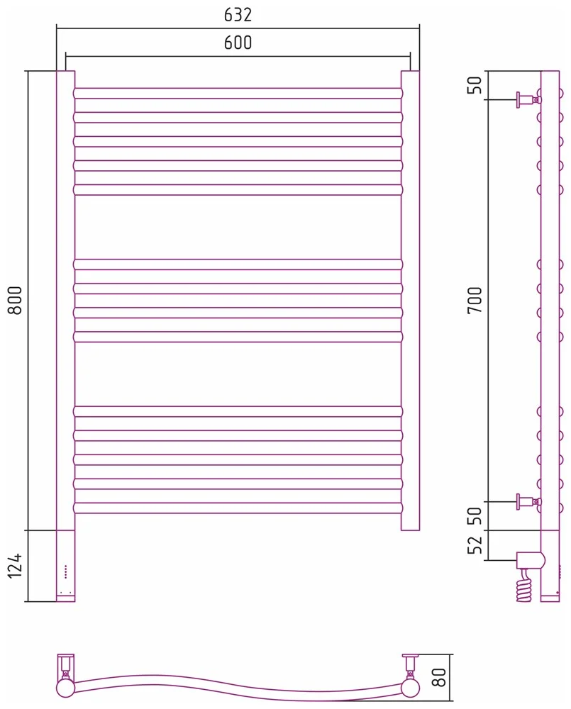 Полотенцесушитель электрический Сунержа Флюид 3.0 800х600 МЭМ левый 00-5820-8060 Без покрытия