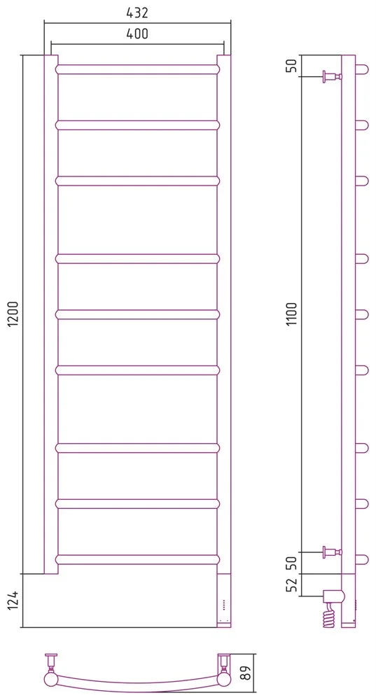 Полотенцесушитель электрический Сунержа Галант 3.0 1200х400 МЭМ правый 00-5801-1240 Без покрытия