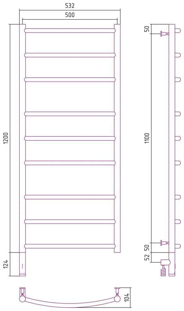 Полотенцесушитель электрический Сунержа Галант 3.0 1200х500 МЭМ левый 071-5800-1250 Сатин