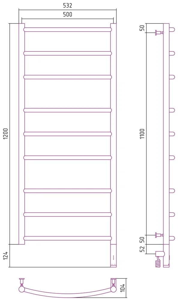 Полотенцесушитель электрический Сунержа Галант 3.0 1200х500 МЭМ правый 15-5801-1250 Темный титан муа