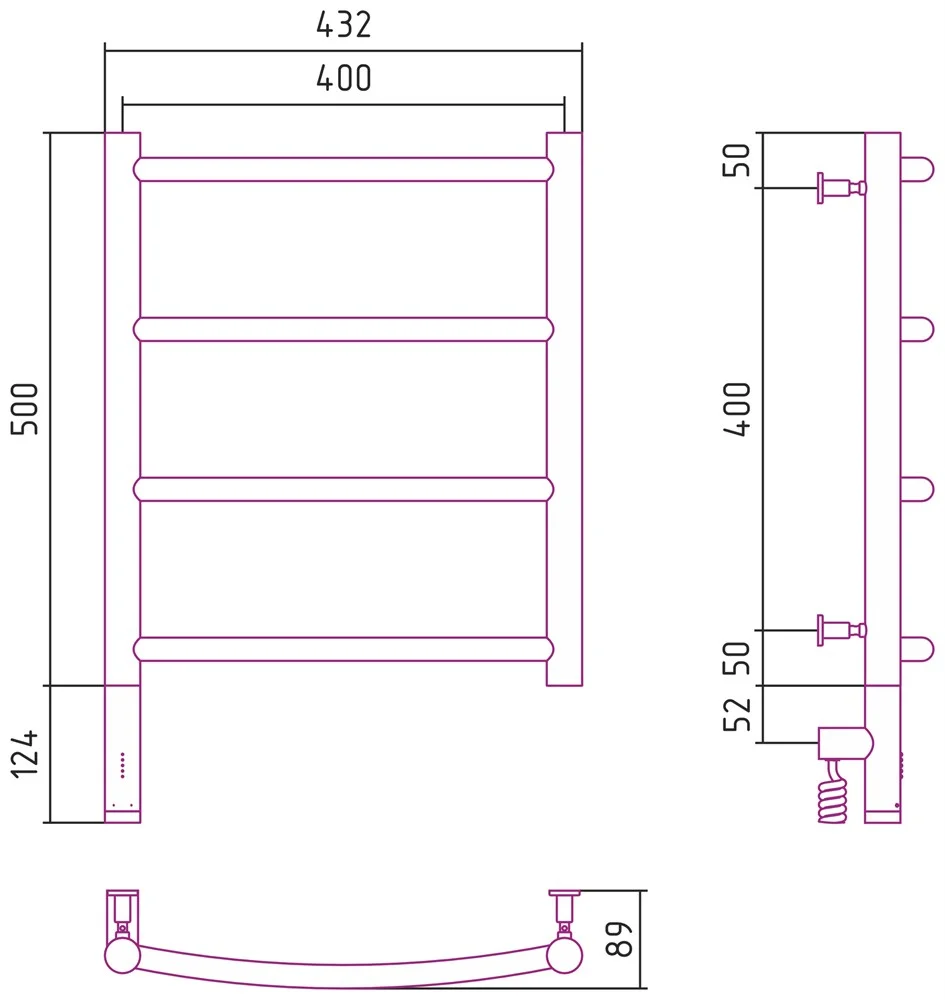 Полотенцесушитель электрический Сунержа Галант 3.0 500х400 МЭМ левый 15-5800-5040 Темный титан муар