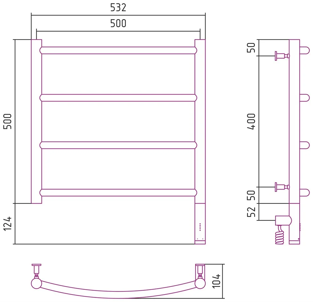 Полотенцесушитель электрический Сунержа Галант 3.0 500х500 МЭМ правый 00-5801-5050 Без покрытия