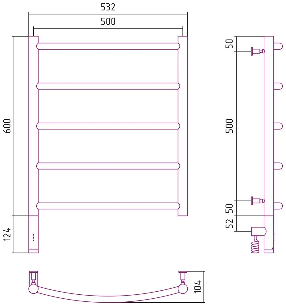 Полотенцесушитель электрический Сунержа Галант 3.0 600х500 МЭМ левый 12-5800-6050 Белый