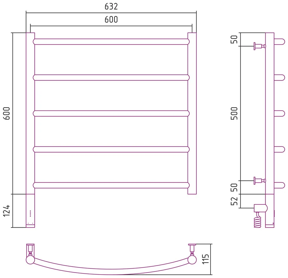 Полотенцесушитель электрический Сунержа Галант 3.0 600х600 МЭМ левый 022-5800-6060 Матовая шампань