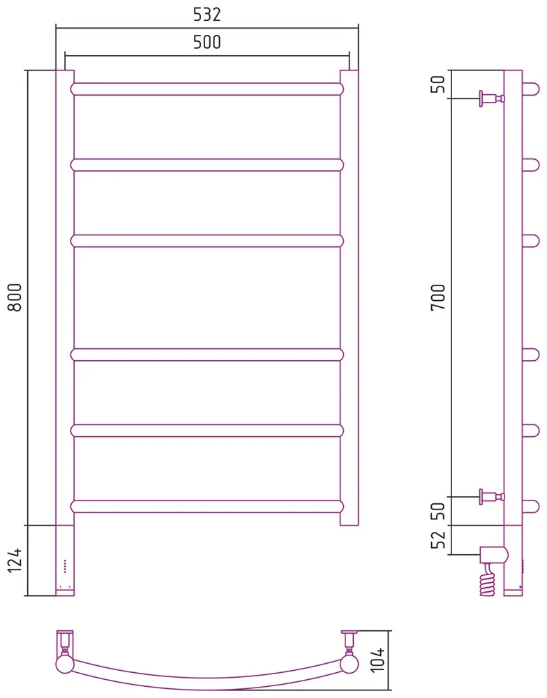 Полотенцесушитель электрический Сунержа Галант 3.0 800х500 МЭМ левый 30-5800-8050 Матовый белый
