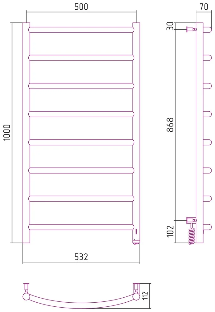 Полотенцесушитель электрический Сунержа Галант 4.0 1000х500 МЭМ правый 30-0831-1050 Матовый белый