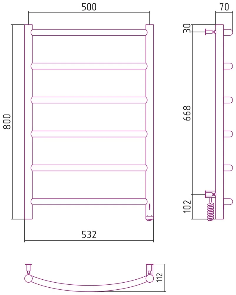 Полотенцесушитель электрический Сунержа Галант 4.0 800х500 МЭМ правый 15-0831-8050 Темный титан муар