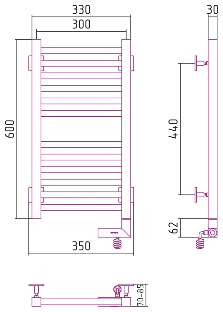 Полотенцесушитель электрический Сунержа Модус 2.0 600х300 МЭМ правый 00-5601-6030 Без покрытия