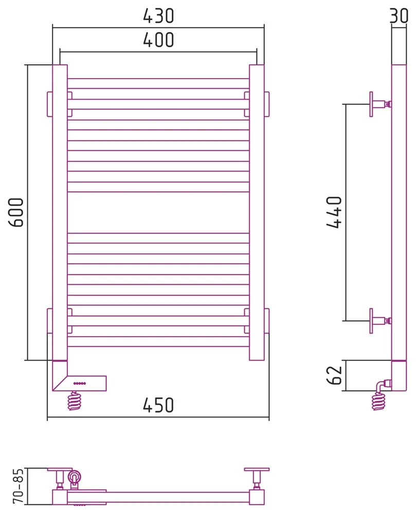 Полотенцесушитель электрический Сунержа Модус 2.0 600x400 МЭМ левый 00-5600-6040 Без покрытия