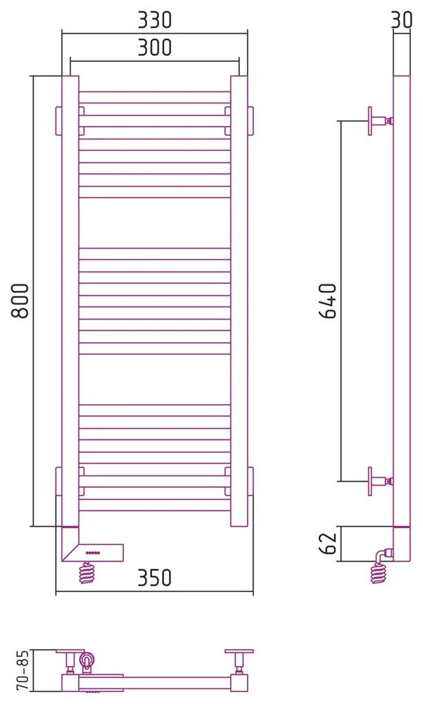 Полотенцесушитель электрический Сунержа Модус 2.0 800x300 МЭМ левый 00-5600-8030 Без покрытия