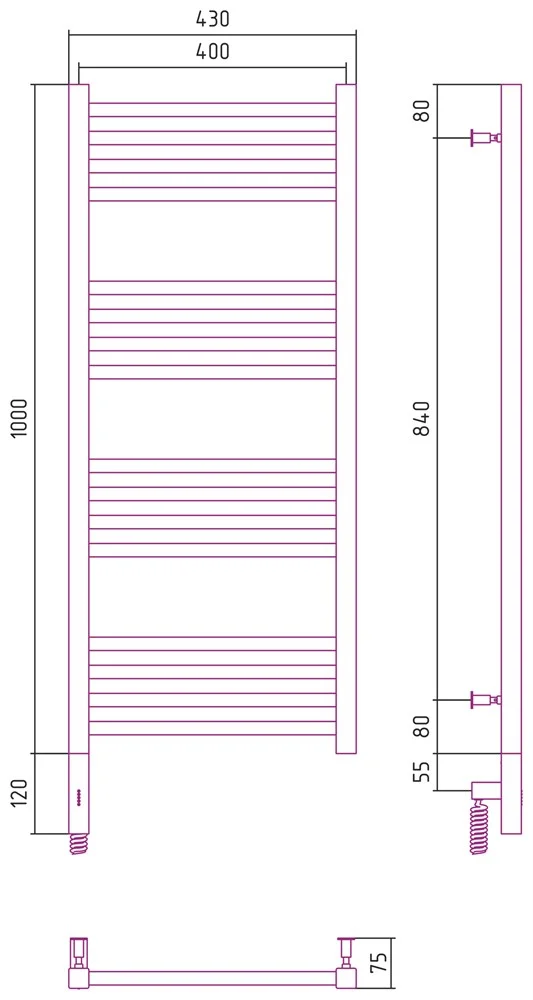 Полотенцесушитель электрический Сунержа Модус 3.0 1000х400 МЭМ левый 020-5700-1040 Шампань