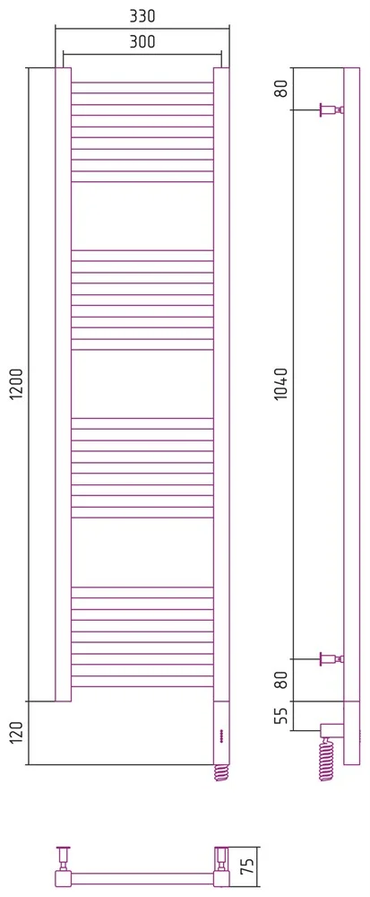 Полотенцесушитель электрический Сунержа Модус 3.0 1200x300 МЭМ правый 00-5701-1230 Без покрытия