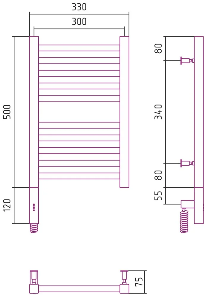 Полотенцесушитель электрический Сунержа Модус 3.0 500x300 МЭМ левый 00-5700-5030 Без покрытия