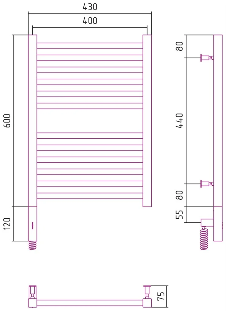 Полотенцесушитель электрический Сунержа Модус 3.0 600х400 МЭМ левый 020-5700-6040 Шампань