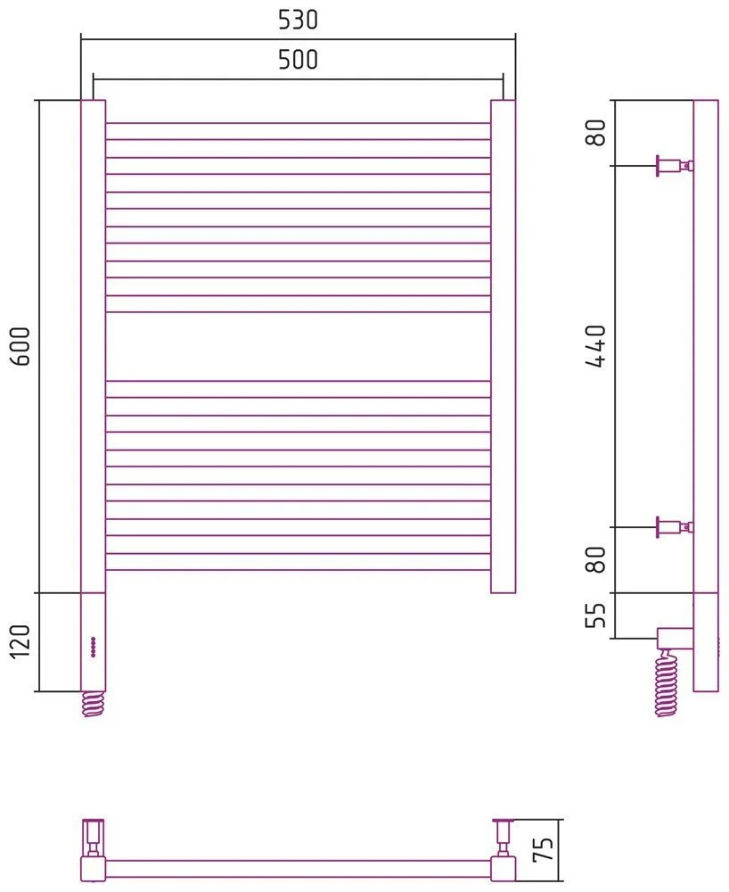 Полотенцесушитель электрический Сунержа Модус 3.0 600х500 МЭМ левый 020-5700-6050 Шампань