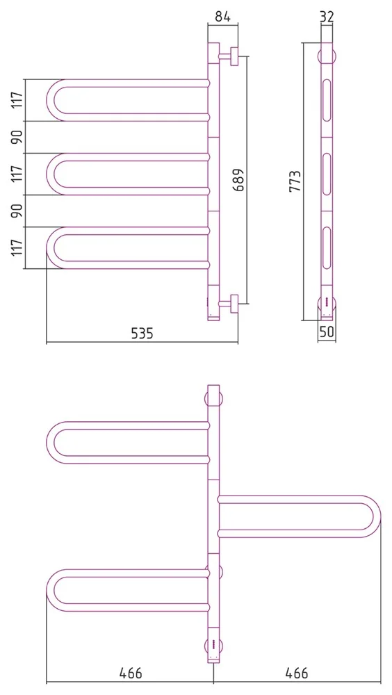 Полотенцесушитель электрический Сунержа Парео 4.0-3С 773х535 00-0823-0773 Без покрытия