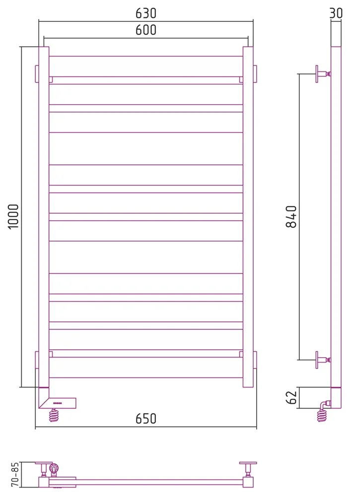 Полотенцесушитель электрический Сунержа Центурион 2.0 1000x600 МЭМ левый 31-5602-1060 Матовый черный