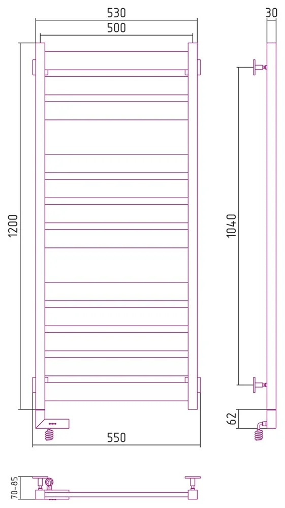 Полотенцесушитель электрический Сунержа Центурион 2.0 1200x500 МЭМ левый 30-5602-1250 Матовый белый