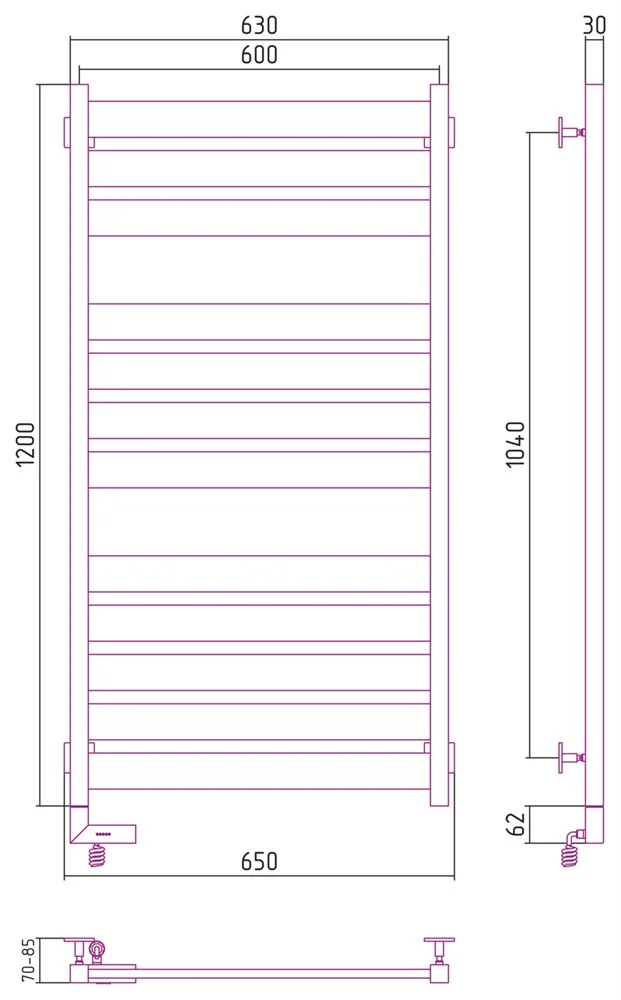 Полотенцесушитель электрический Сунержа Центурион 2.0 1200x600 МЭМ левый 31-5602-1260 Матовый черный