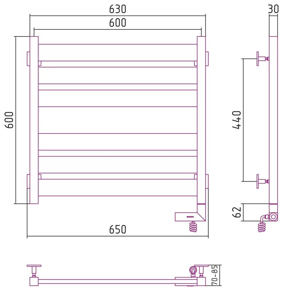 Полотенцесушитель электрический Сунержа Центурион 2.0 600x600 МЭМ правый 00-5603-6060 Без покрытия