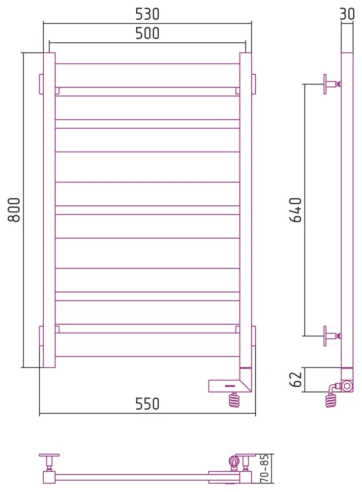 Полотенцесушитель электрический Сунержа Центурион 2.0 800x500 МЭМ правый 9003-5603-8050 RAL 9003 Сиг